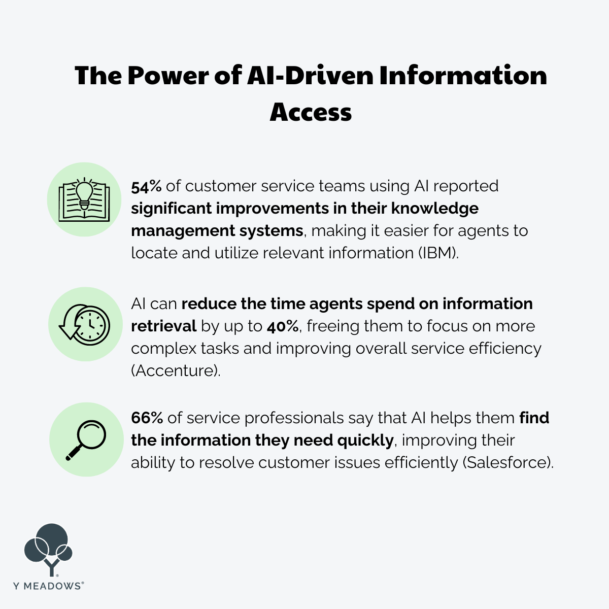 For example, when a support ticket is opened, Y Meadows’ AI is able to automatically pull up a summary of the customer's previous interactions, relevant knowledge base articles, and other pertinent information to help provide the agent with the context and information they need to properly answer the request. This enables agents to resolve issues more efficiently by reducing the time spent researching, ultimately leading to faster, more effective customer service.